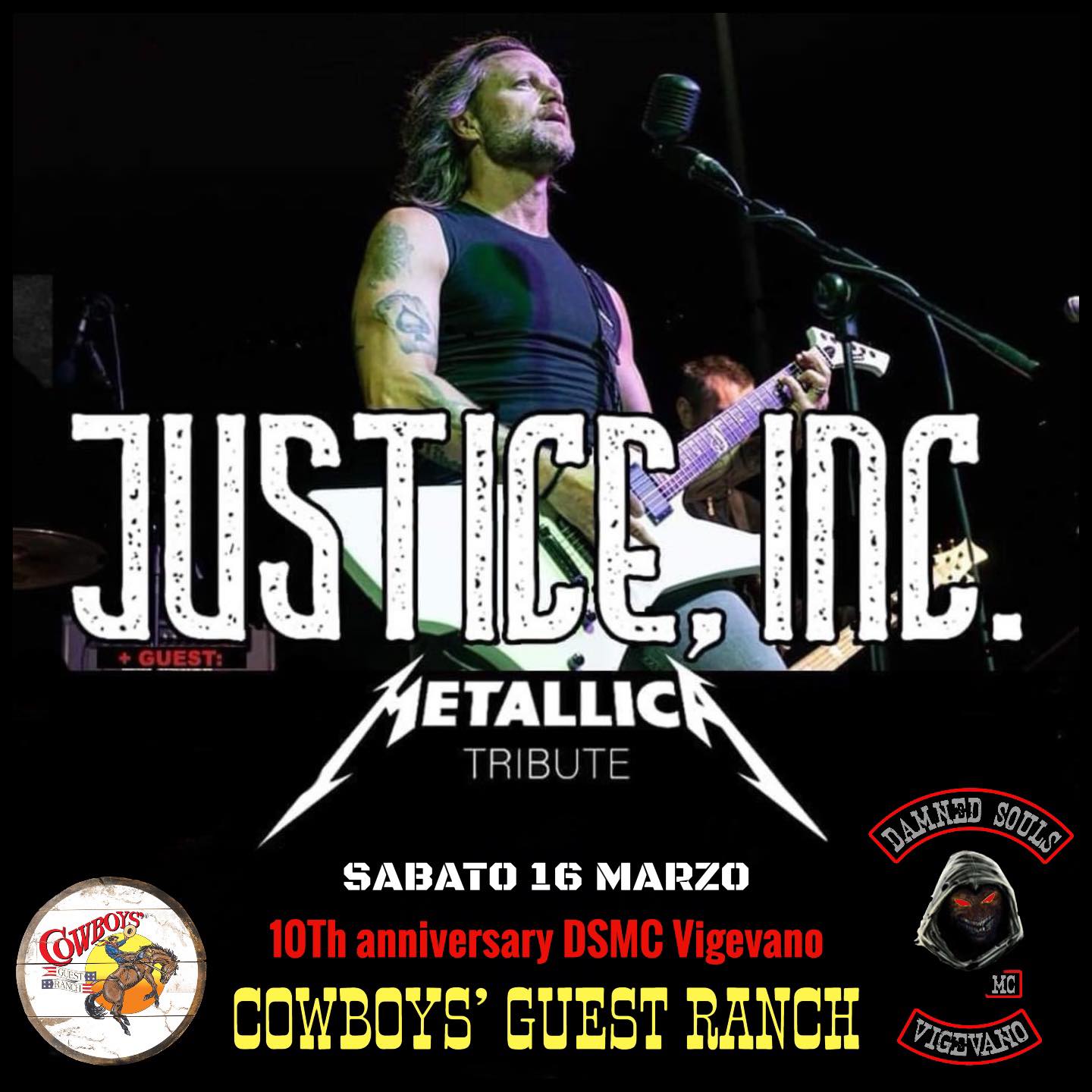 ππππππ¨ ππ πππ«π³π¨ al Cowboys’ Guest Ranch, a partire dalle 18:00, festeggeremo i 10 Anni del club motociclistico Damned Souls MC Vigevano!