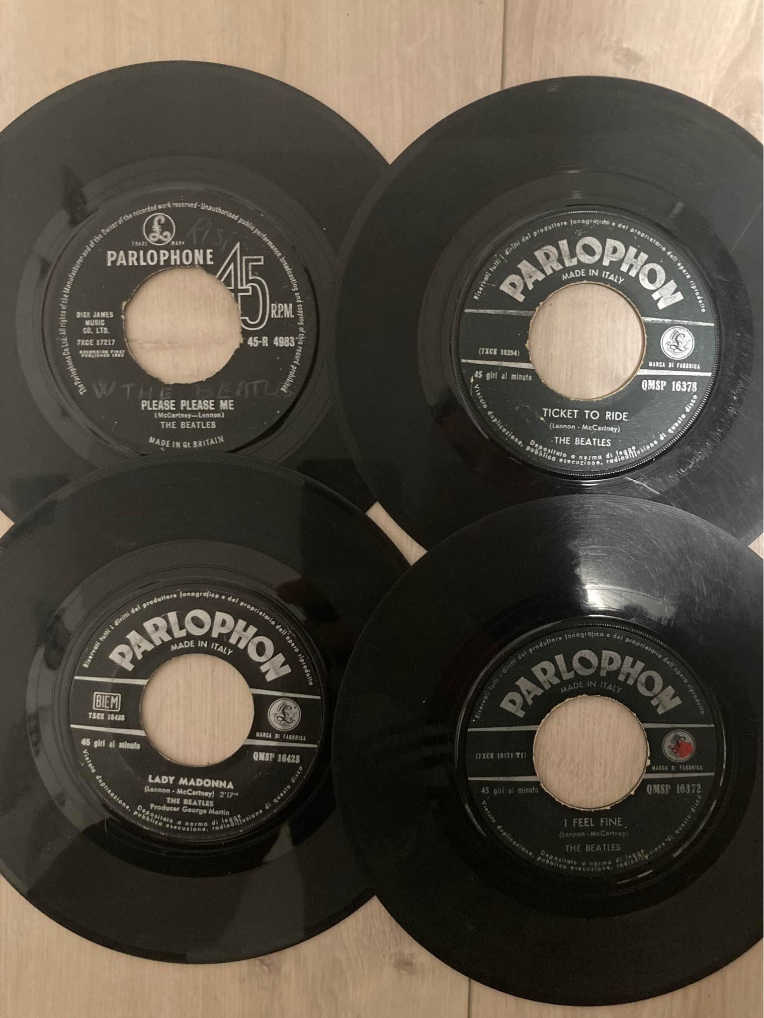 13 dischi vinili 45 giri dei Beatles senza copertina, la maggior parte in condizioni discrete, qualche buono. Tutti ascoltabili.