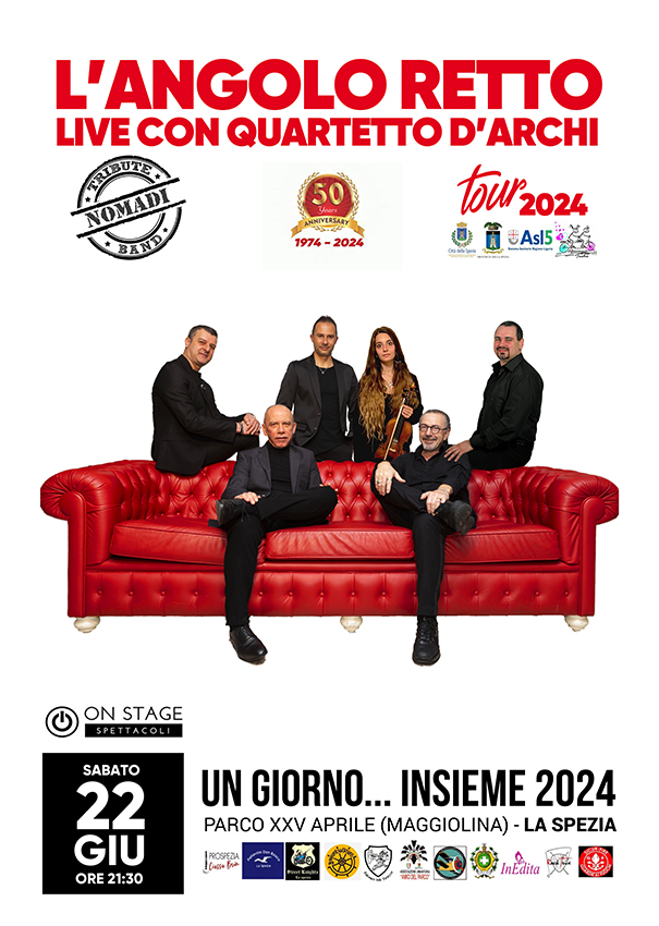 22 Giugno – La Spezia – Con i nostri amici dell’Associazione Tandem per il reparto oncologico dell’Ospedale S.Andrea di La Spezia. Un concerto straordinario nella configurazione con quartetto d’archi. Vi aspettiamo numerosi per percorrere insieme un cammino di solidarietร con la musica dei nostri amati Nomadi interpretata dalla nostra band con un compendio di classico&Rock