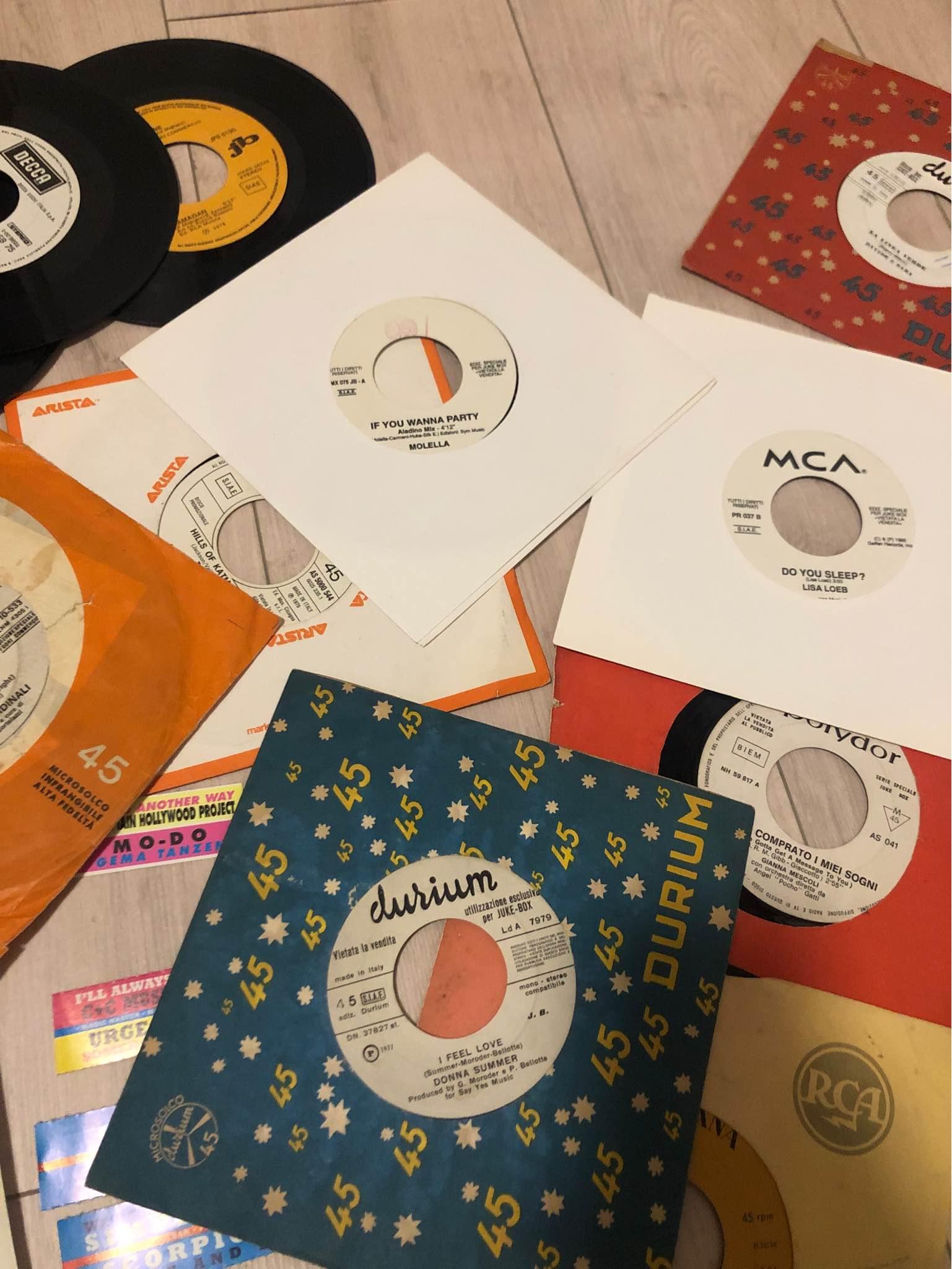 39 dischi 45 giri jukebox. 4 con sticker, 8 con busta, gli altri 27 senza, tutti ben tenuti.