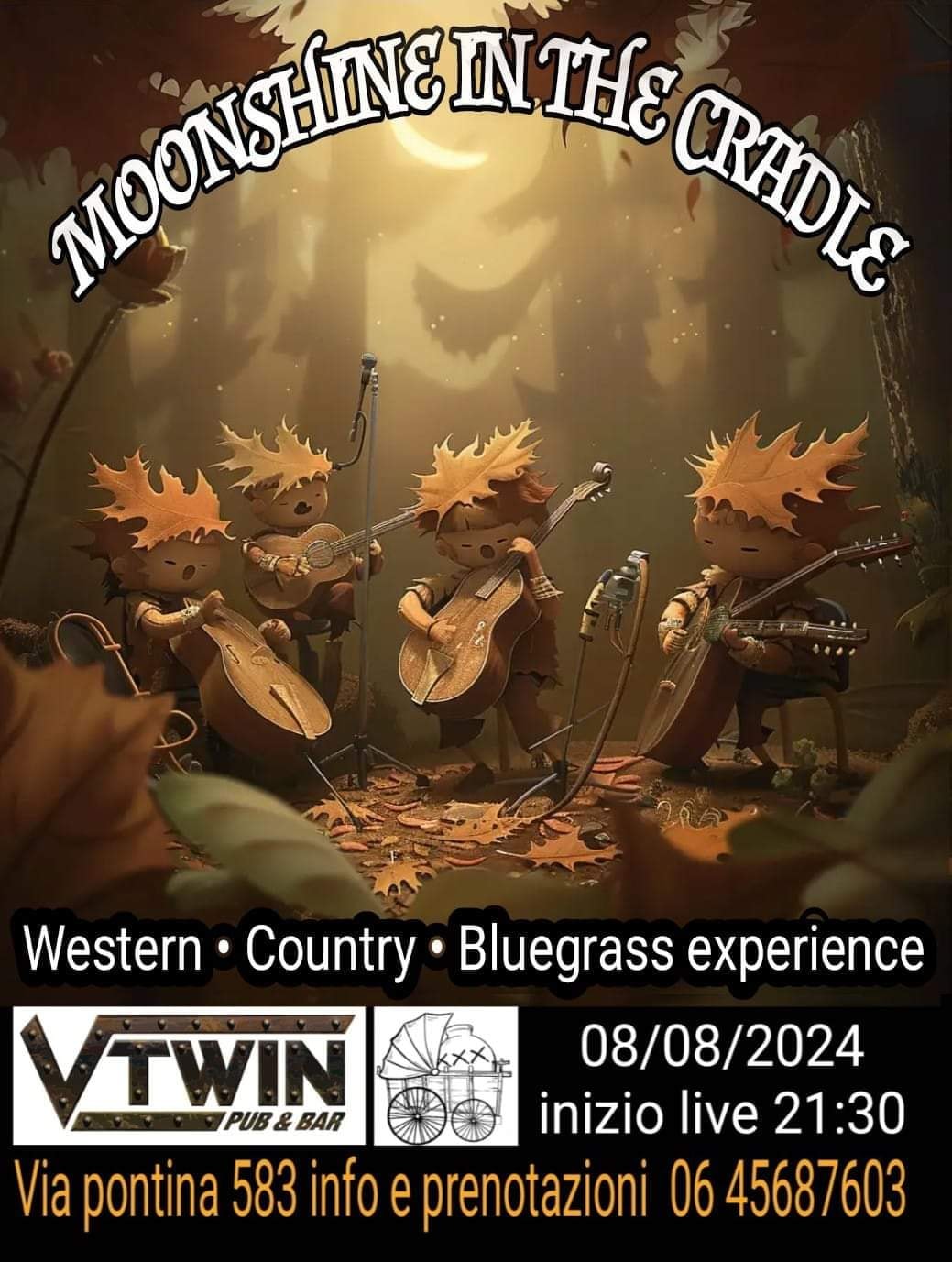 💥Giovedì 8 Agosto in live ore 21h30 Moonshine in the cradle #Bluegrass #esperienza #Western #countrymusic #country