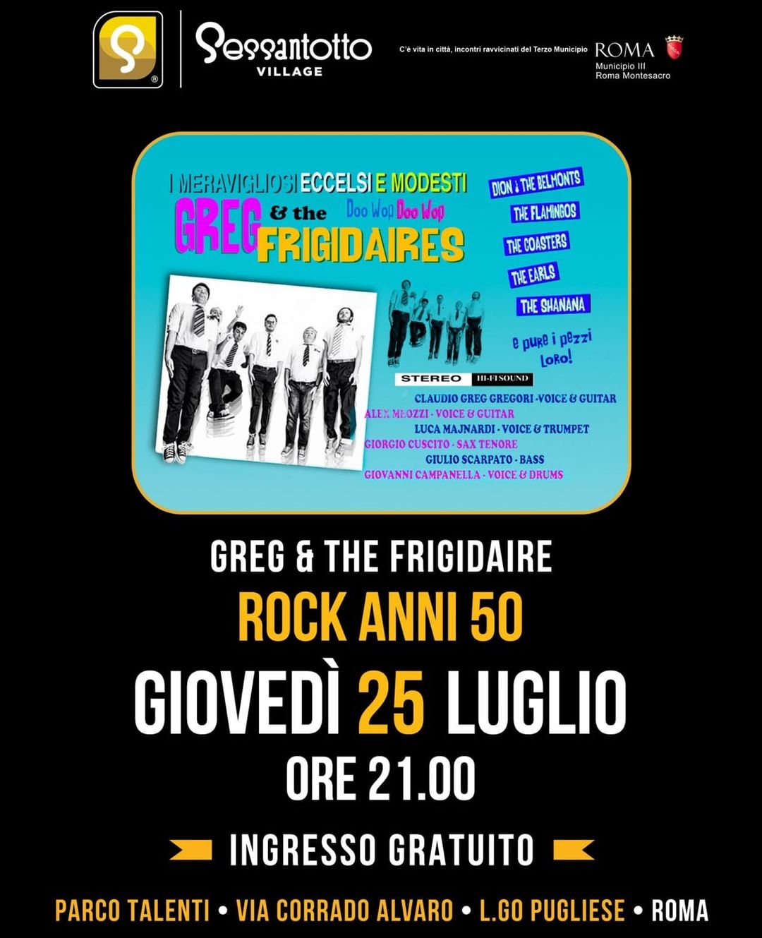 Giovedì 25 luglio, dalle 21, sul nostro palco Greg & The Frigidaire…Rock Anni 50 🔝