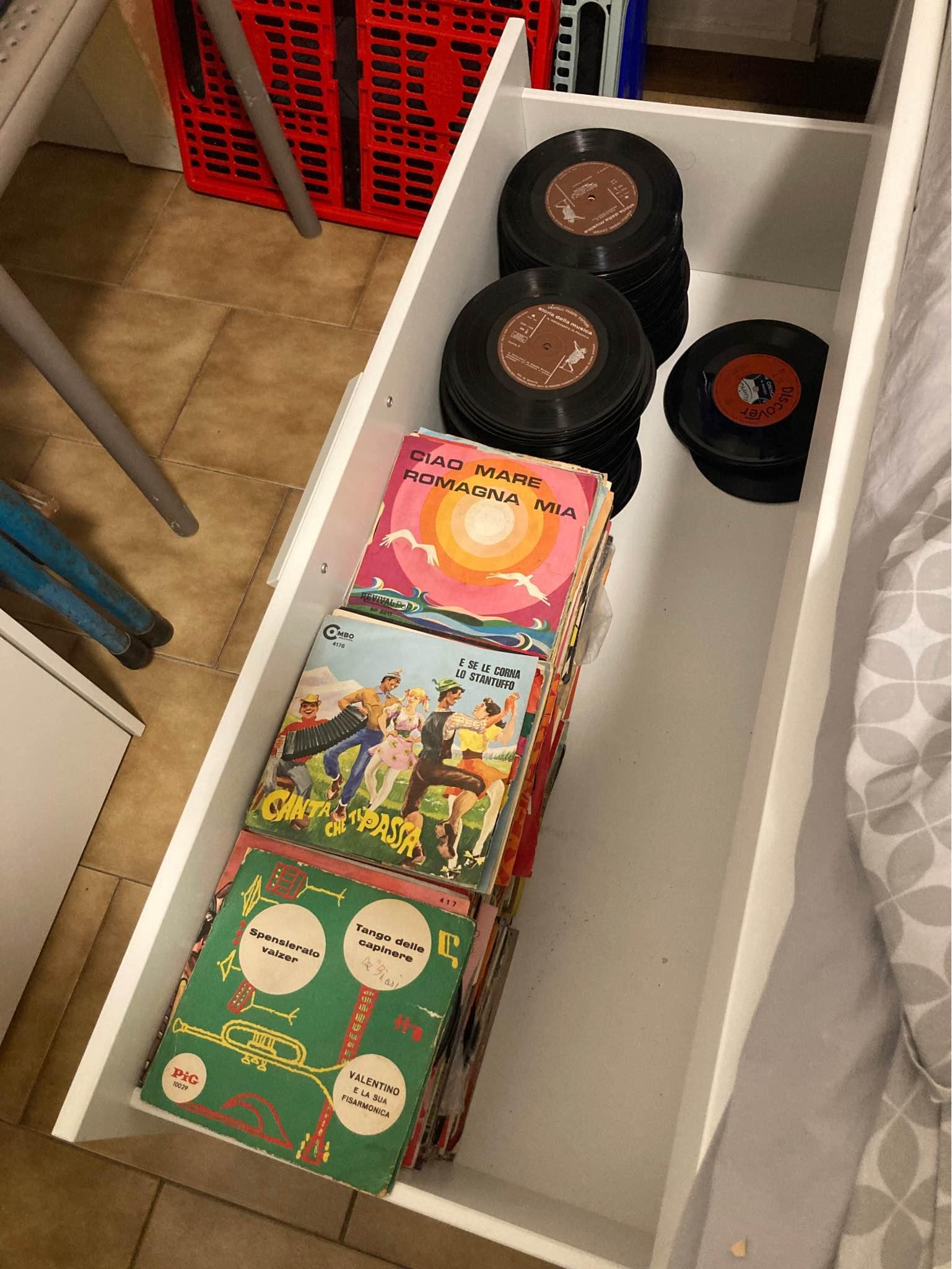 Lotti di dischi vinili 45 giri e 33 giri per uso artistico. I dischi presentano qualche segnetto o graffietto e sono quasi tutti di classica, lirica o popolari. Perfetti per decorazioni o usi alternativi. Non chiedetemi la lista perché nn ha senso, non li vendo per l’ascolto o per collezione.