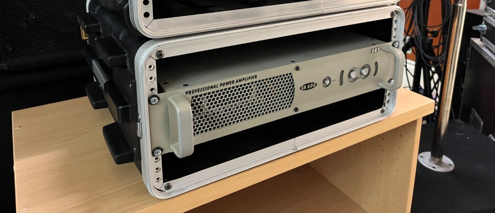 Gli amplificatori sono installati professionalmente in una custodia molto ben conservata, Avvitato sul retro con staffe di montaggio aggiuntive. (Rackcase Opzionale e quindi non incluso in questa vendita Il case ha 1U aperto nella parte superiore e inferiore per una migliore ventilazione.)