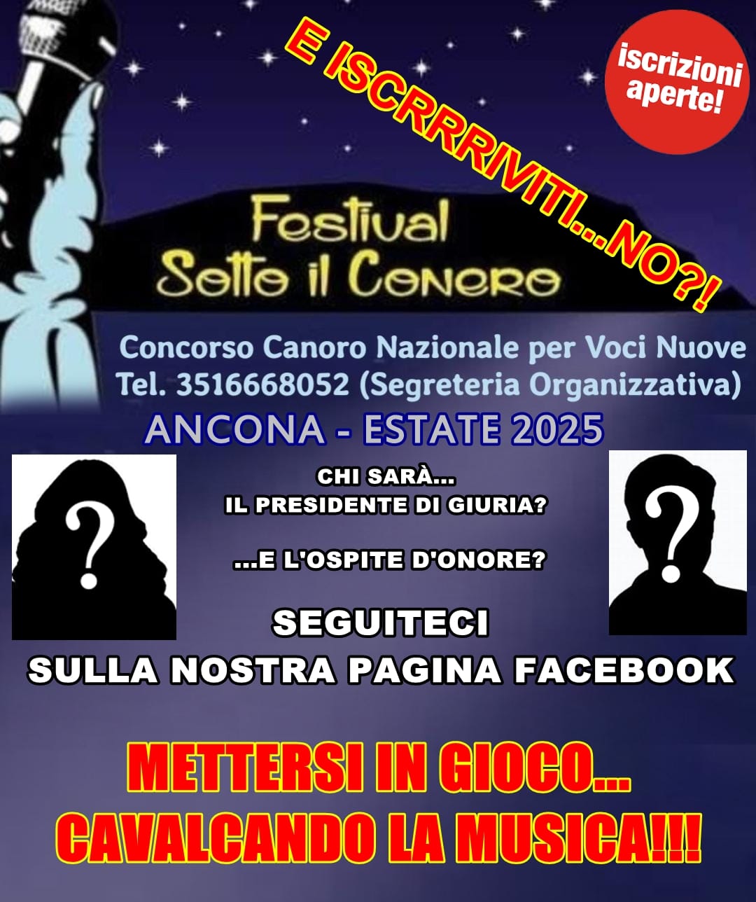 ๐ SONO APERTE LE ISCRIZIONI ALLE PRESELEZIONI ONLINE, FUTURE AUDIZIONI E FASI FINALI DI “FESTIVAL SOTTO IL CONERO” – 5ยฐ EDIZIONE 2025!