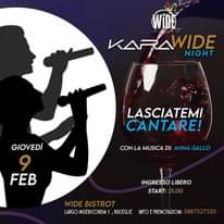 Potrebbe essere un'immagine raffigurante il seguente testo "WIDE KARA WIDE NIGHT LASCIATEMI CANTARE! GIOVEDÌ 9 FEB CON LA MUSICA DI: ANNA GALLO INGRESSO LIBERO START: 21.00 WIDE BISTROT LARGO MISERICORDIA BISCEGLIE INFO PRENOTAZIONI: 3887527320"