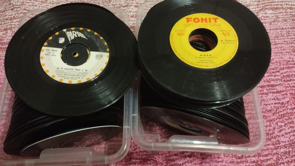 Vendo lotti di 45 giri senza copertina. Condizioni varie da accettabile (da lavare, sporchi e impolverati) a ottime. Valutazione visiva. (non ci cono dischi ondulati o con evidenti graffi che ne compromettono l’ascolto). Musica di tutti i generi, ci possono essere edizioni JukeBox Di questi lotti non ho liste svendo a 10€ per 50 pezzi o multipli. (la foto è dimostrativa, i dischi vegono presi a caso dalla scatola)
