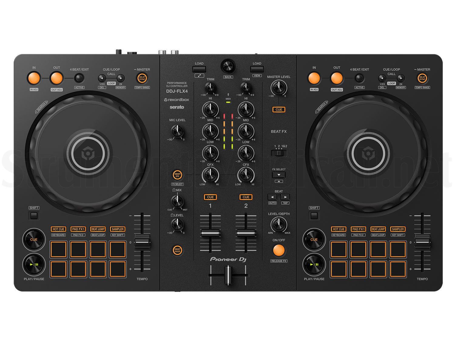 Il DDJ-FLX4 è una console a 2 canali dal design lineare, facile da usare, e un aspetto professionale.E’ possibile utilizzare gratuitamente i software per DJ rekordbox o Serato DJ Lite collegando il PC/Mac al DDJ-FLX4 per completare la configurazione da DJ. Se desideri passare a Serato DJ Pro, puoi acquistare una licenza o un abbonamento per la versione premium del software.