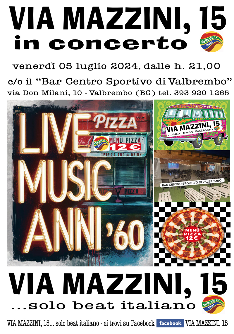 Sono certo che ti divertirai a ballare, cantare e a riscoprire con noi le canzoni del BEAT targato Italia 😎🍕🍟🍻🍺🥁🎹🎤🎸🪇🎸