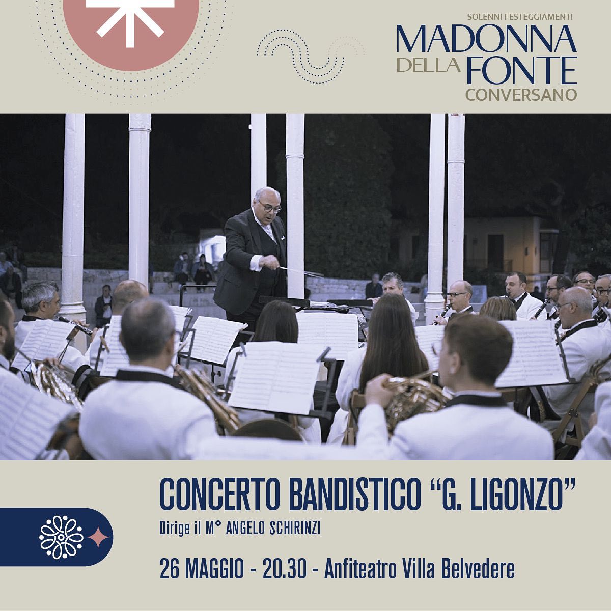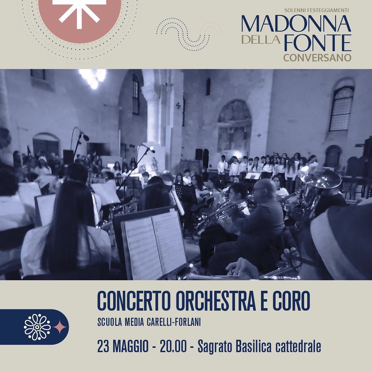 In occasione dei solenni festeggiamenti della “Madonna della Fonte 2024”, dal 23 al 27 maggio, nella splendida cornice delle suggestive location del Centro Storico di Conversano, Vi proponiamo un calendario ricchissimo di eventi musicali, tutti ad ingresso libero.